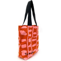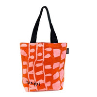 This tote bags showcase a screen-printed design crafted by Tjanpi artist and NPY Women's Council Chairperson Margaret Smith of Imanpa, Northern Territory. They boast a sturdy cotton canvas construction and are equipped with an inner pocket. This item was created and manufactured through a partnership with Contain Design Studio.