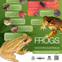 Produced by the Western Australian Museum this poster features Frogs of South-Western, Western Australia.
