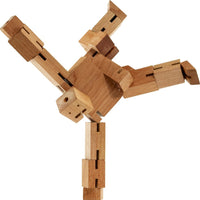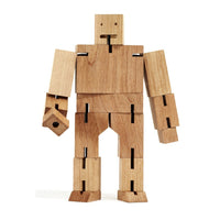 Inspired by Japanese Shinto Kumi-ki puzzles, Cubebot is a non-traditional take on the toy robot. Cubebot's strong hardwood frame can hold many poses, and his elastic band muscles and durable wooden limbs make him impervious to breakage.